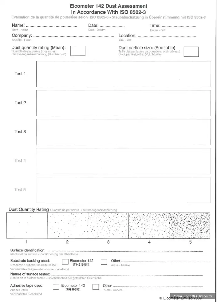 I perform dust testing as per: